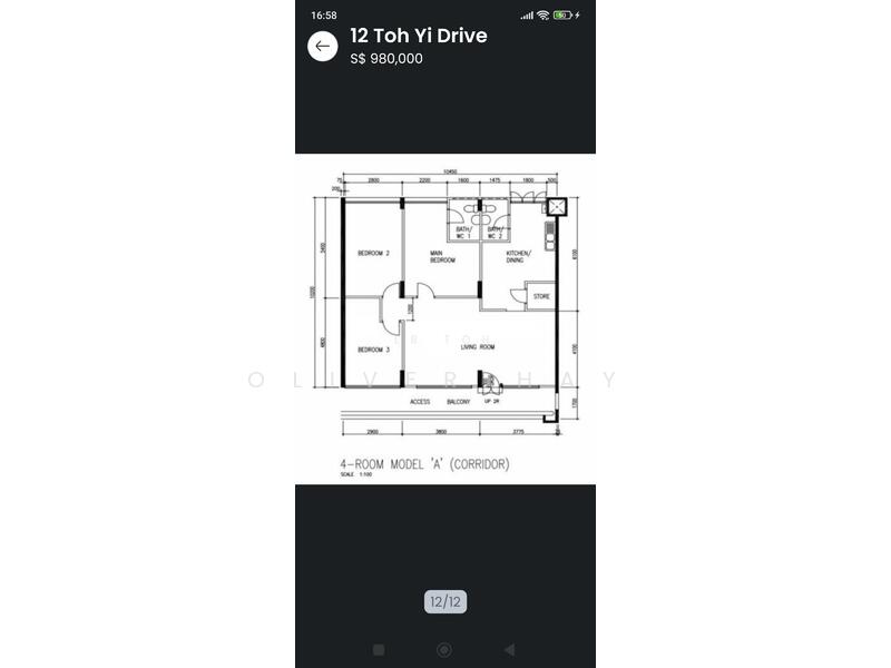 The sale price of this unit at 12 Toh Yi Drive is S$ 980,000.