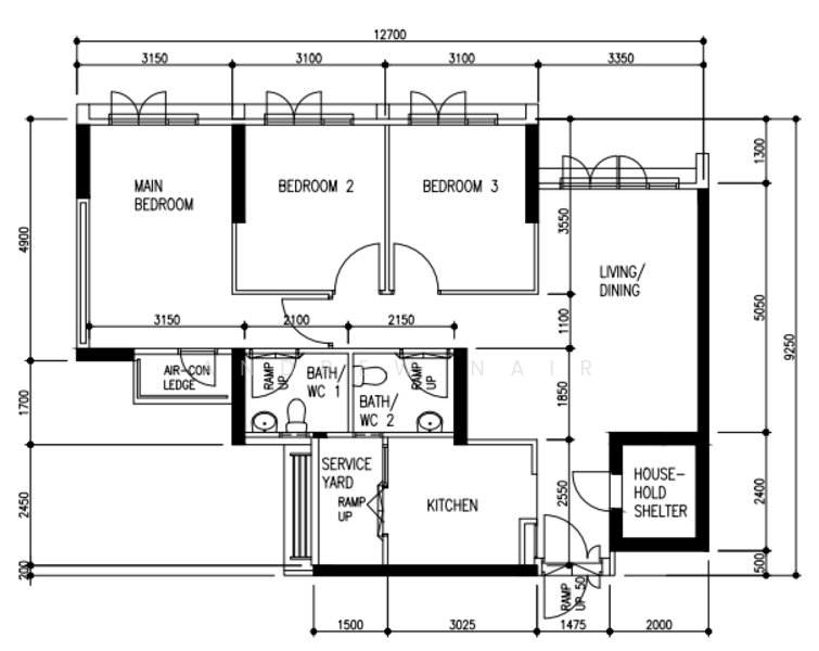 - 3 BEDROOMS, 2 TOILETS with Bomb Shelter