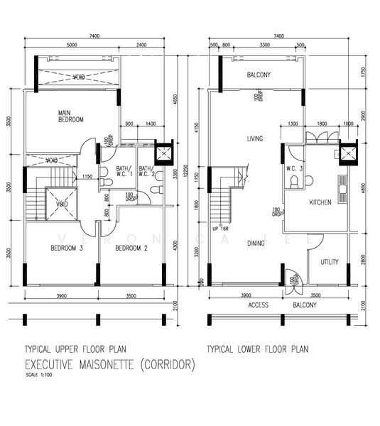 The lower level - generous living and dining area with balcony, a functional kitchen with utility room, a versatile study/helper’s room, and a common bathroom.