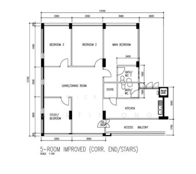 High floor corner 5 room flat
