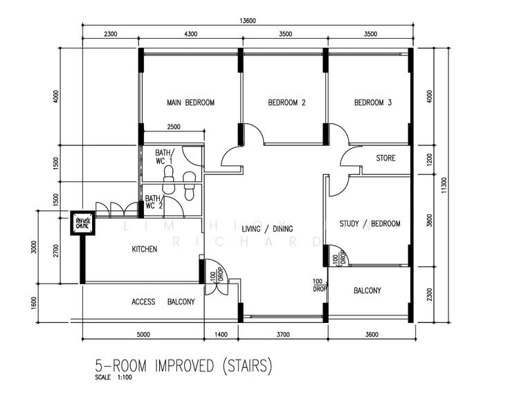 Floor size of this unit at 135 Serangoon North Avenue 2 is 1,305 sqft.