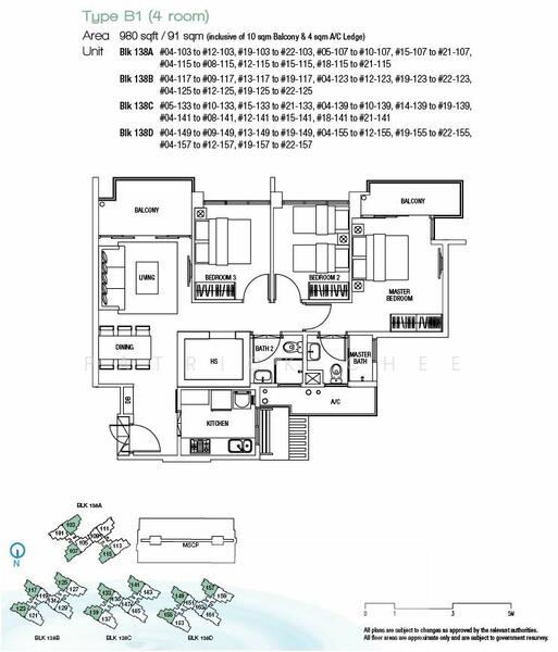 Floor size of this unit at 138D Yuan Ching Road is 980 sqft.