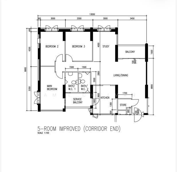 Floor size of this unit at 14A Lorong 7 Toa Payoh is 1,300 sqft.