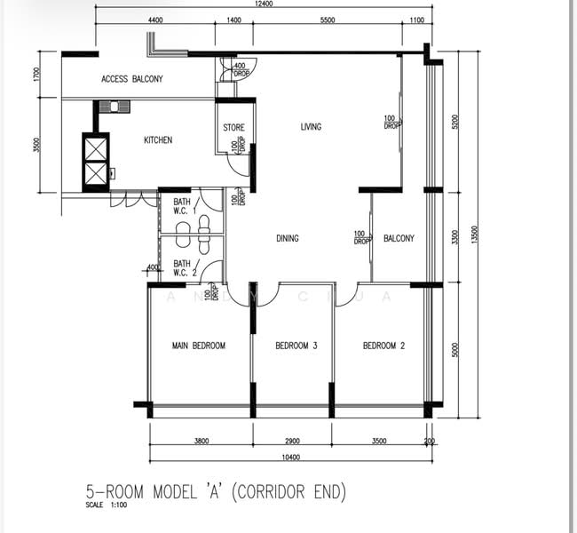 • Rarely available large 5-room layout in this area