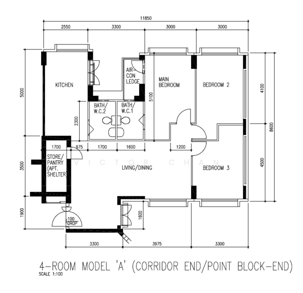 Very squarish and efficient layout for 4rm HDB. Minimal area wastage