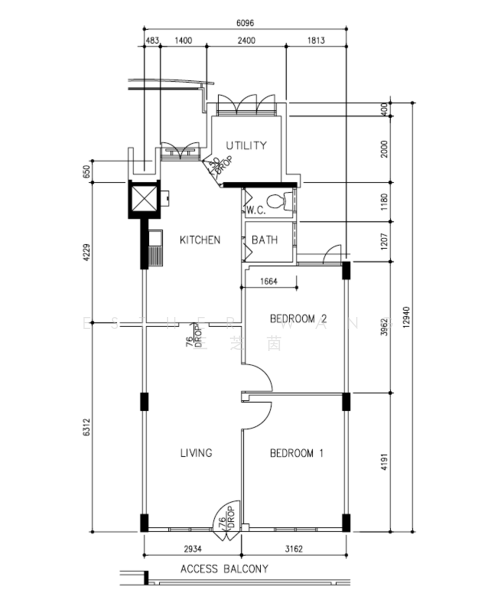 2 bedroom + 1 Utility Room(can fit a bed)