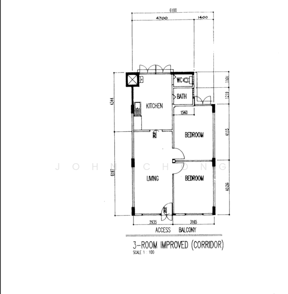 HDB 3rm flat, 2 bedroom 1 bath (635 sqft)