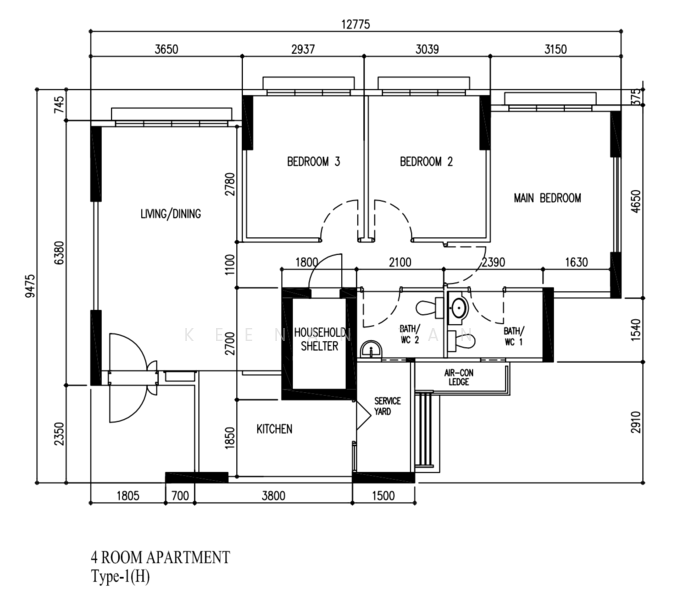 - 990 sqft / 3 Bedroom & 2 Bathroom
