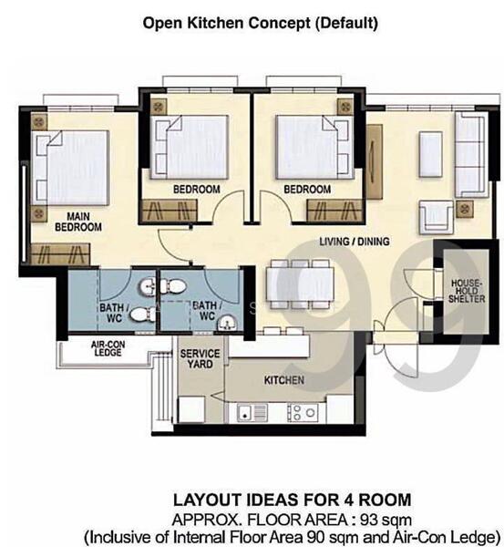 • Spacious 4-room layout (approx. 1,001 sqft)