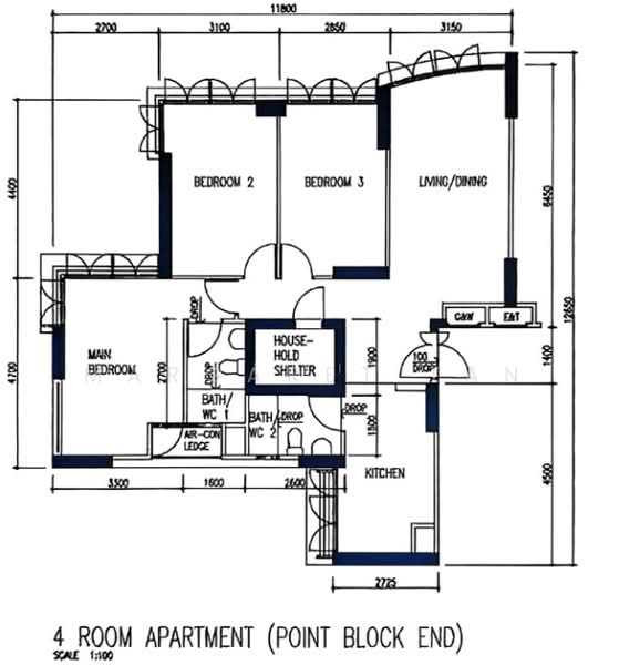 Floor size of this unit at 26C Jalan Membina is 969 sqft.