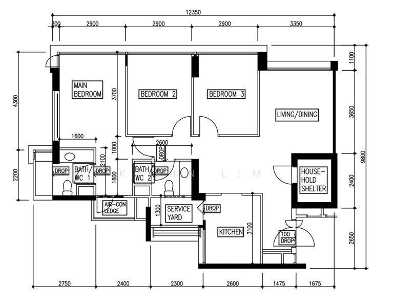 * 3 Bedrooms, 2 Bathrooms, Service Yard and Household Shelter