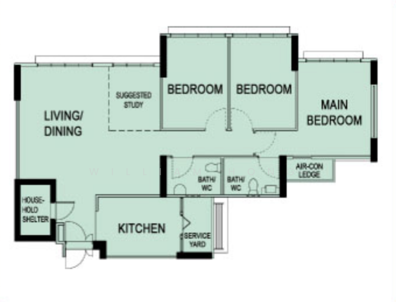 Note: Original layout of the unit has been re-configured to one huge masterbedroom with 2 study rooms.