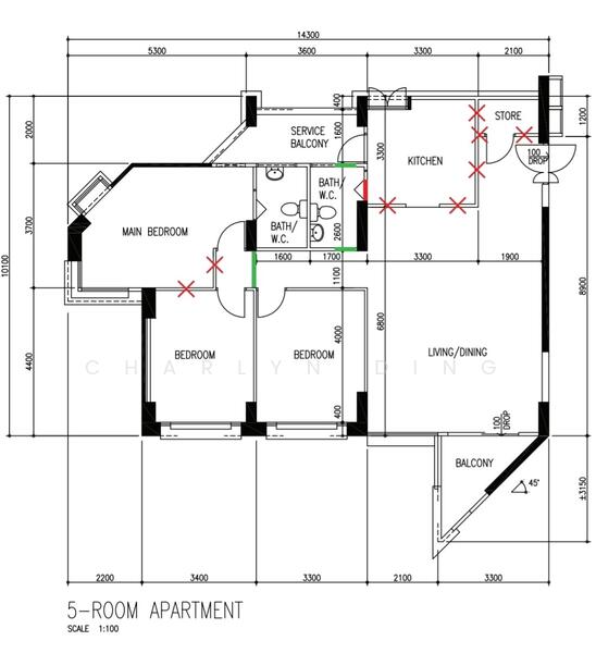 - No ceiling beams in living + dining + kitchen area – extremely rare in HDB units; allows a smooth ceiling line