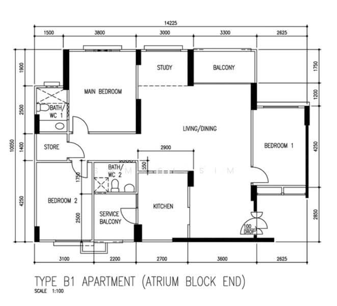 - Possibility to hack study and kitchen to open up to a full rectangle super large living room
