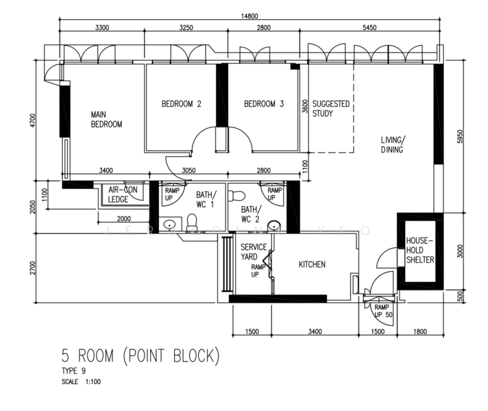 5 rm unit - 3 bedroom + Study