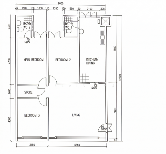 • Layout Flexibility: The kitchen wall can be safely hacked to create an open-concept island kitchen while keeping structural columns intact.