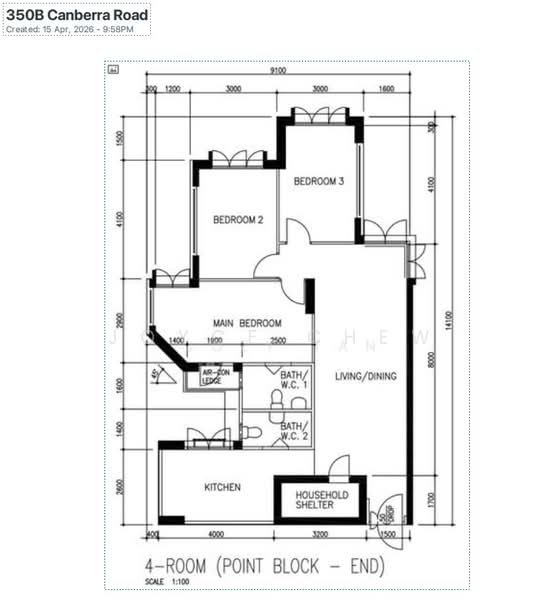 Floor size of this unit at 350B Canberra Road is 1,001 sqft.
