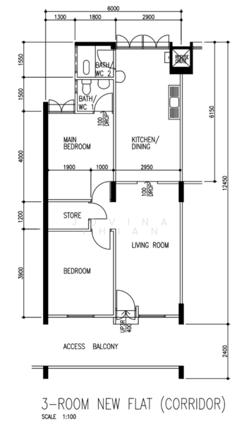 Top Floor 3 Room Flat For Sale! No Extension Needed!