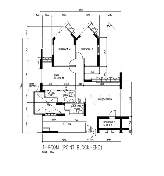 4rm flat, 990sqft (92sqm),