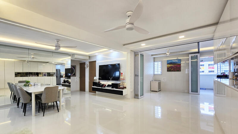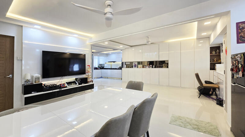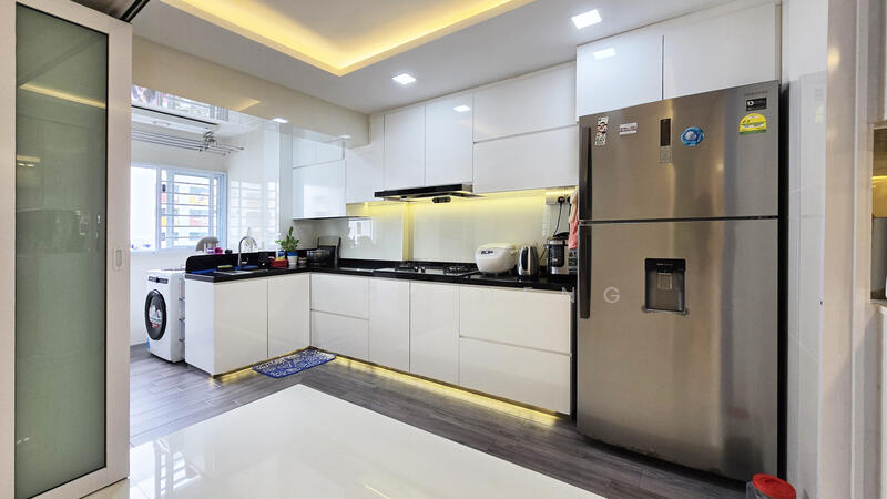 Nicely renovated and well-maintained 5R HDB flat with spacious and squarish living & dining space. This residence boasts modern kitchen furnishings, ample cabinets, and a well-designed layout that maximizes space. Perfect for families seeking a tranquil home.