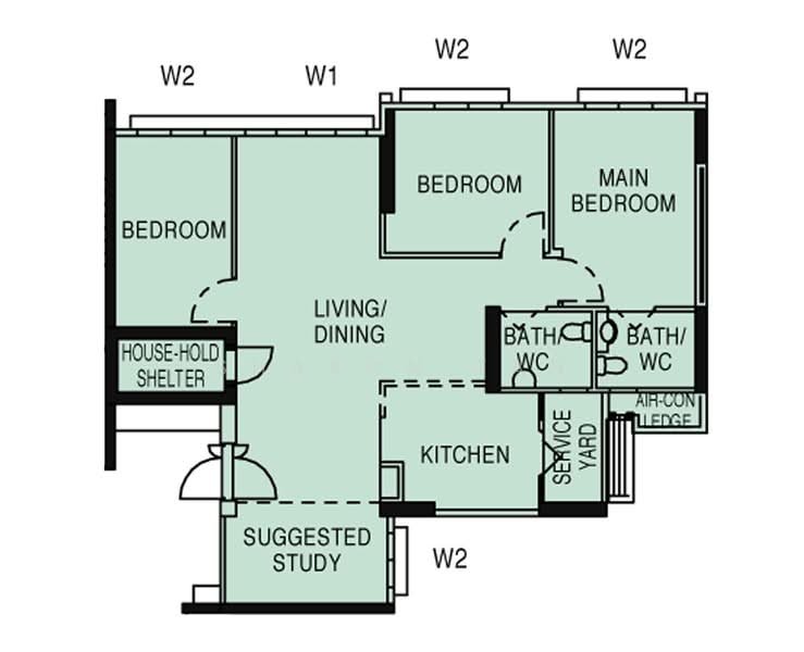 • 5 RM HDB - Proper 3 Bedrooms + S + 2 Toilets