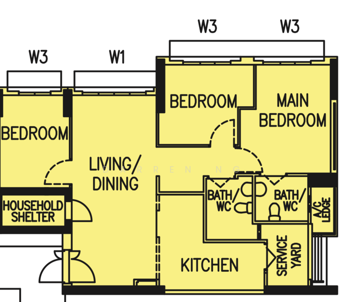 The dumbbell layout gives new homeowners 3 sizeable bedrooms and 2 bathrooms with a total 1012 sqf of living space, including a bomb shelter, and an open concept kitchen flanked by a chic kitchen island counter.