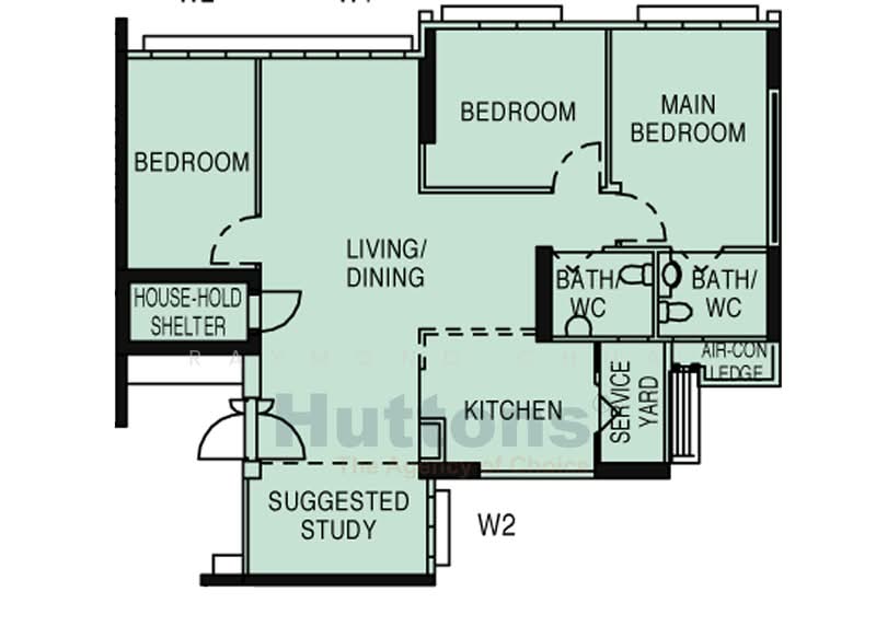 • Master bedroom combined with common room – extra spacious layout