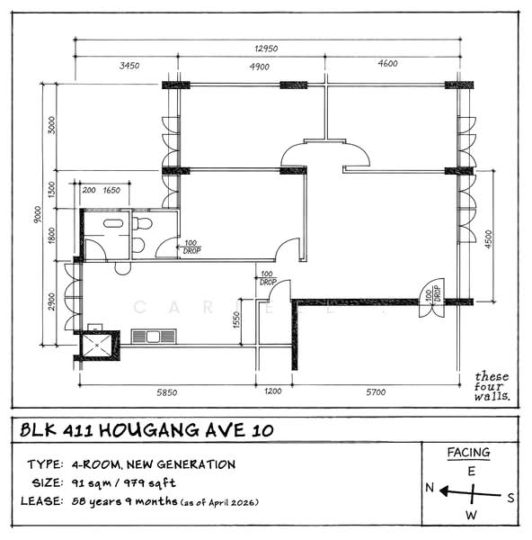 This is a mid-floor 4NG unit with an efficient and squarish layout. While it’s in original condition, it’s the perfect canvas for those who plan to renovate.