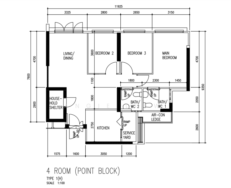 - Size: 1001sqft (93 sqm) | Model 4A (3 bedrooms + 2 bathrooms)