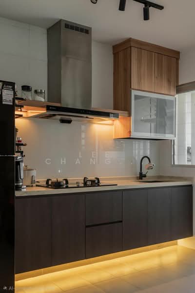 • Modern Heart of the Home: Features a sleek, contemporary kitchen cabinet set-up that is both functional and stylish.