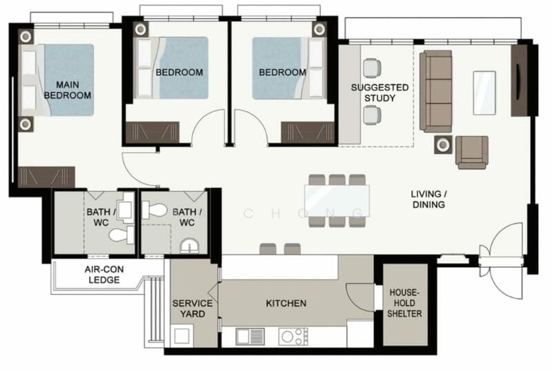 • 3 Bedrooms + Study – Ample space for family and home office needs