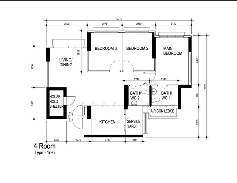 + 4A unit at 93sqm / 1001 sqft