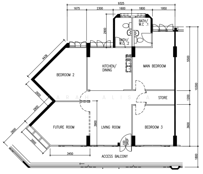 Larger 4room 1163sqft unit