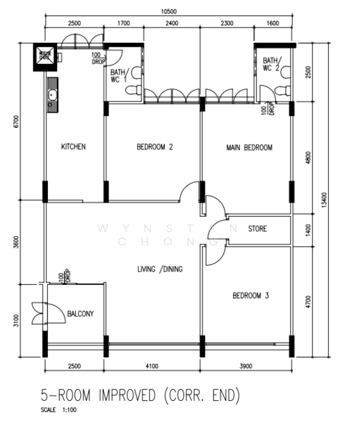 5 room flat (1302sqft)
