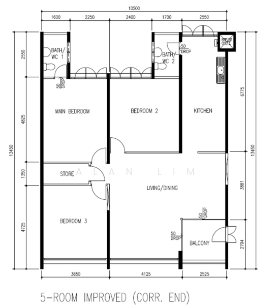 • Massive Space: 121sqm (1,302sqft) 5I layout with an efficient, squarish floor plan.