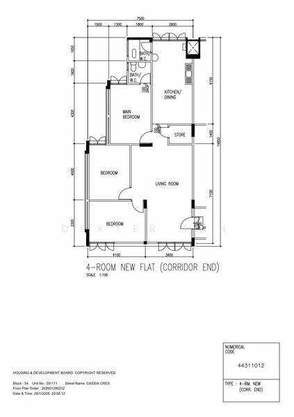 Floor size of this unit at 54 Cassia Crescent is 1,001 sqft.
