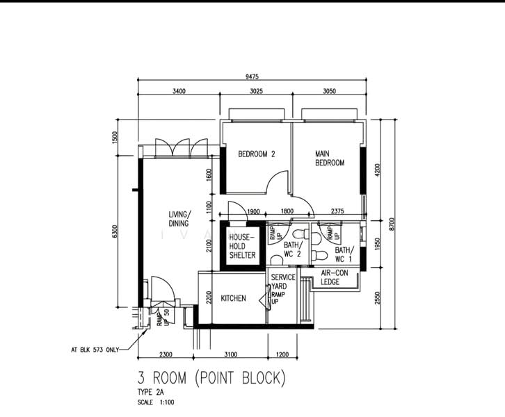 For Sale Blk 571 Choa Chu Kang 3A model (2 bedrooms, 2 bathrooms) with an efficient, functional layout.