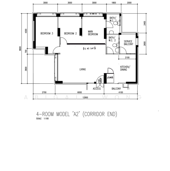 2-Bedroom (Converted from 3) | 979 sqft | Corner Unit | Mid-Floor