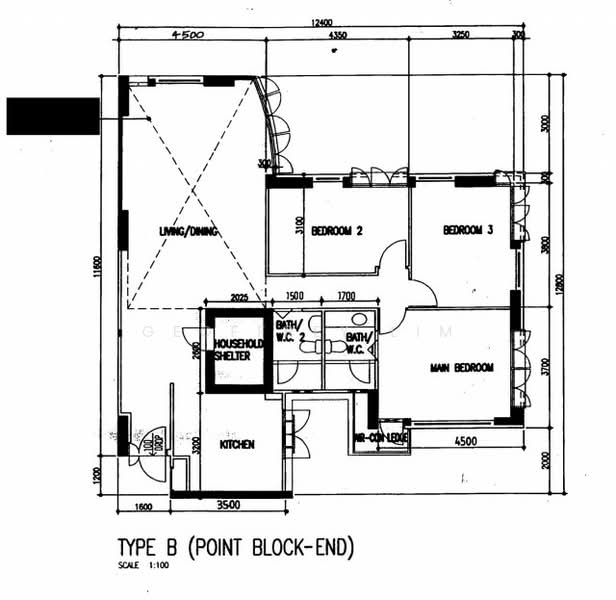 Condo layout with bedrooms tuck one side