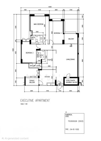 3 Bedrooms + 1 Study