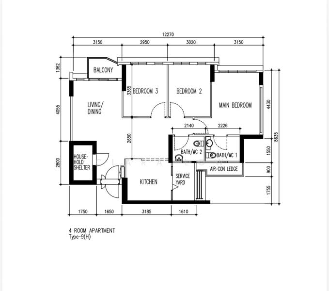 - 3 bedroom, 2 bathroom HDB 4A flat