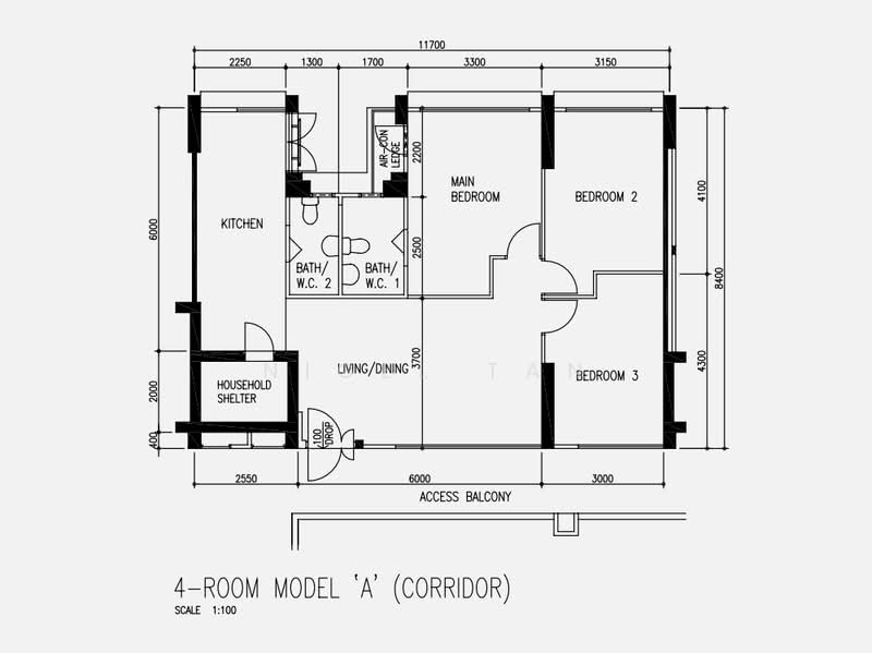 4 Room Model A - 969sqft / 90sqm