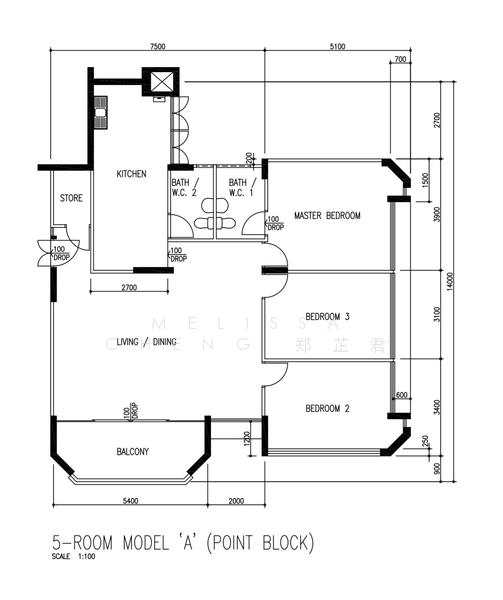 1420 sqft, corner unit (point block)