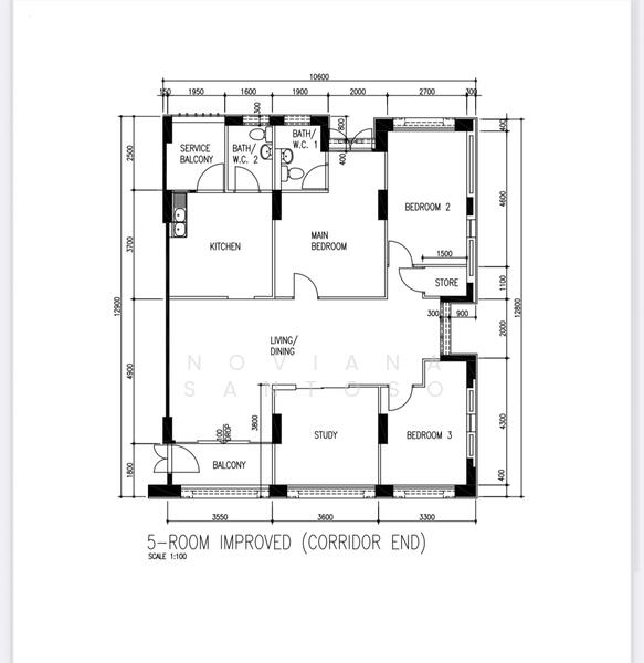 3 bedrooms plus study