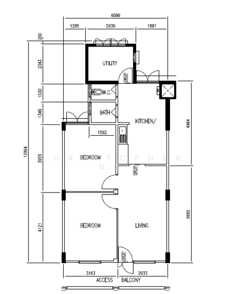 2 beds + Utility room