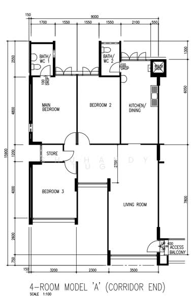 4 room corner unit with potential to do 4th room