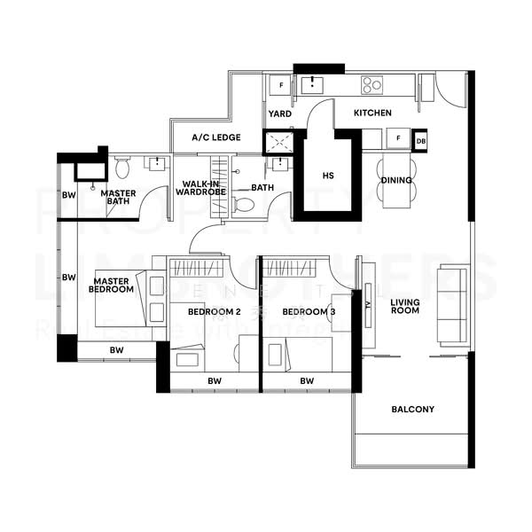 * Size: 1152 sqft / 107 sqm