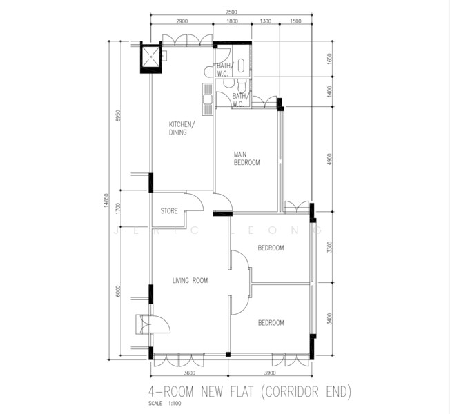 Floor size of this unit at 97 Geylang Bahru is 990 sqft.