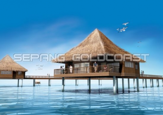 The jewel in the crown for Sepang Goldcoast is the Golden Palm Tree Water Villas - a palm shape water villa that stretches out 1.5km into the sea, facing the unobstructed view of the historical Straits of Malacca.