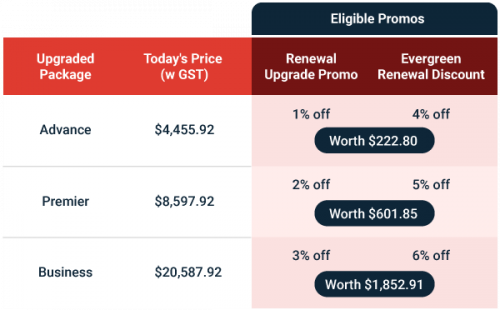 Enjoy up to 9% off when you upgrade or renew your package today! Promotions are valid until 29 October, terms & conditions apply.